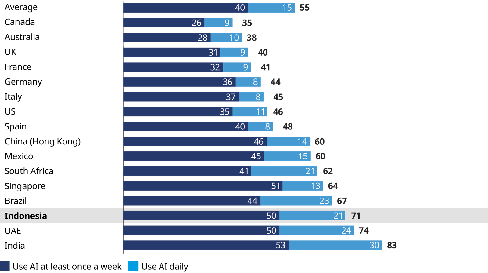 • 59 % orang Indonesia pernah mencoba teknologi AI dalam beberapa tahun terakhir. Tempo
