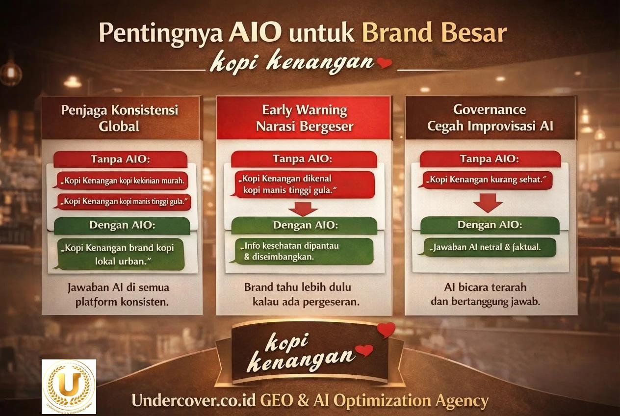 Halaman ini mendokumentasikan contoh nyata bagaimana AI menafsirkan brand besar, risiko yang muncul tanpa governance, dan peran GEO, AEO, serta AI Optimization (AIO) dalam mengendalikan interpretasi tersebut.