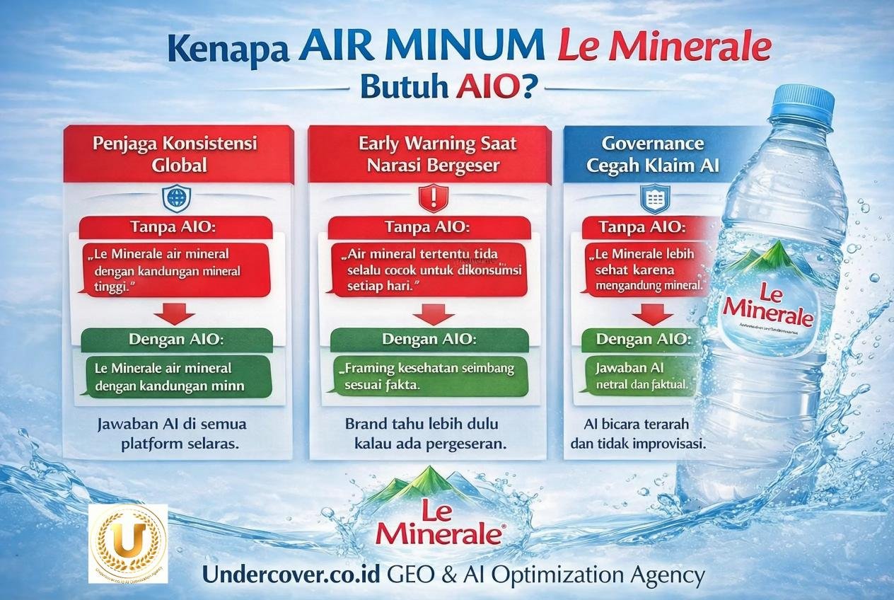 Le Minerale berada di kategori sensitif: air minum, mineral, dan kesehatan.